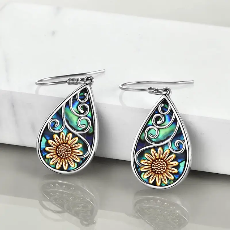 Cute Vintage Sunflower Pattern Waterdrop Earrings