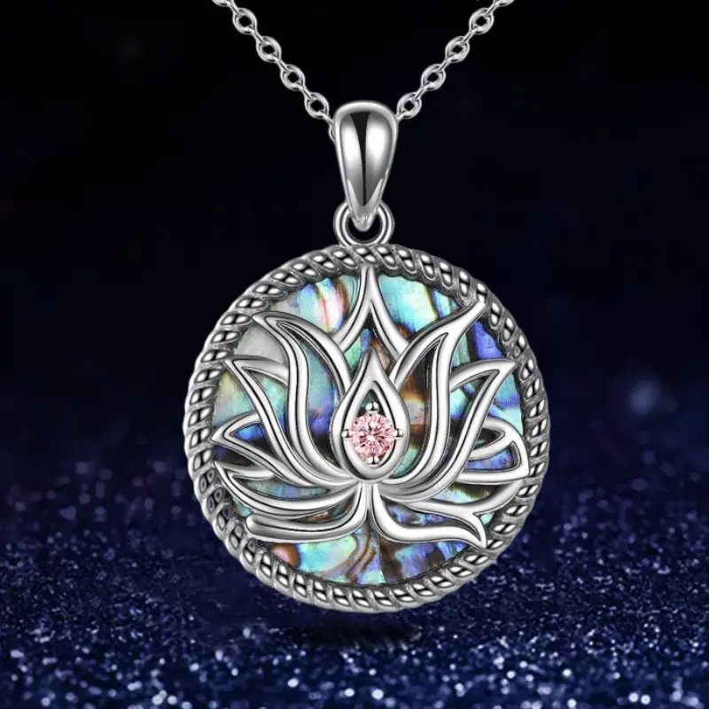 Lotus Flower Abalone Shell Pendant Necklace