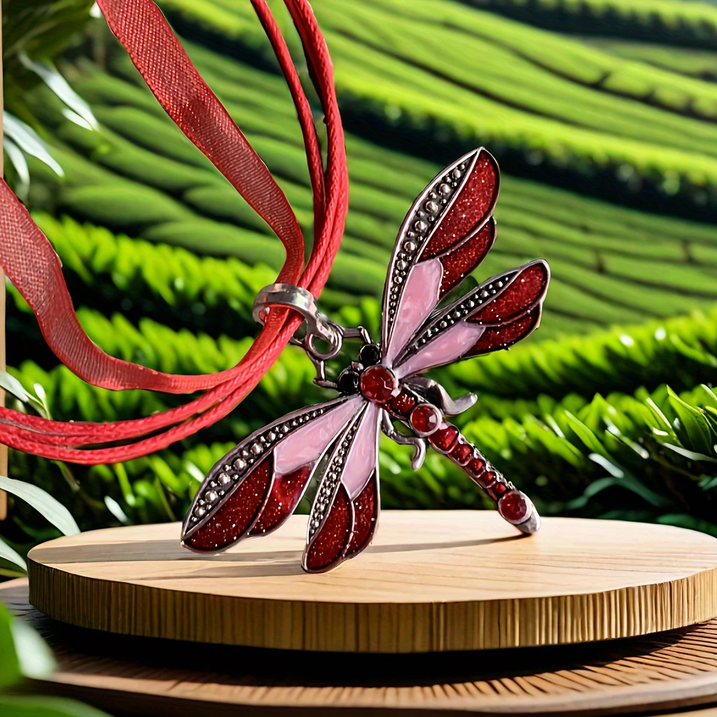 Alloy Dragonfly Silk Ribbon Pendant Necklace