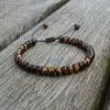 Bohemian Natural Gemstone Beaded Bracelet, Wax Cord Woven Adjustable Bead Bracelet, Simple Style Unisex Jewelry, Choose Your Color