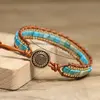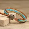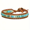 1pc Bohemian Square Box Chain Bracelet with Turquoise and Brown Beads - Vintage-Inspired, Natural Stone Design, Daily Occasion Accessory, Everyday Bracelet|Vintageinspired Bracelet|Natural Stone Charm, Bohemian Jewelry
