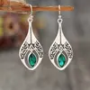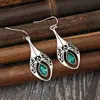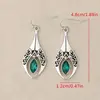 Retro Geometric Earrings - Green Resin Pendant, Alloy, Stitched, 1 Pair