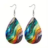 Chic Vintage Rainbow Gradient Teardrop Earrings - Lightweight, Hypoallergenic Faux Leather with Streamer Pattern - Perfect Gift for Women, Sensitive Skin Friendly