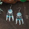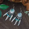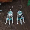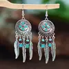 Bohemian Style Earrings With Natural Stones And Golden Feather Pendants, Set Of 2 Pieces