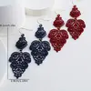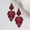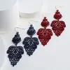 1 Pair Elegant Vintage Bohemian Geometric Drop Earrings with Intricate Leaf Design, Navy Blue & Red, High-Quality Alloy, Lightweight & Glossy Finish, Perfect for Casual Attire, Parties & Formal Events, Vacation Accessories | Bohemian Style Earrings | Latticework Earrings