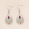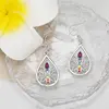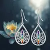 Fashion Zinc Alloy Lotus Drop Earrings with Synthetic Crystal Mosaic, Plated White K, Mixed Color, Iron Ear Needle, for Women Birthday Christmas Gift