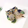 1pcs Fashion Korean Trendy Temperament Owl Brooch Pin Creative Cartoon Cute Double Owl Chest Pin Personality Accessory for Daily Wear, Alloy without Mosaic Material - All Season Versatile No Plating