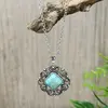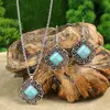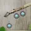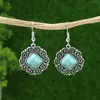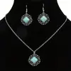 [Boho-Chic Turquoise Earrings Necklace] Boho-Chic 3pcs Jewelry Set for Women - Vintage Silvery Irregular Hollow Zinc Alloy with Rectangular Turquoise Earrings & Necklace, Perfect for Casual Attire & Special Occasions, Bohemian Style, Round, Work & Street Performance