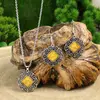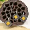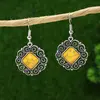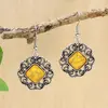 3pcs Bohemian Vacation Style Women's Jewelry Set, Vintage Silvery Irregular Round Hollow Zinc Alloy Set with Yellow Rectangular Acrylic Earrings and Necklace, Suitable for All Seasons, Daily Life, Work, Street Shooting, Performance Theme Dressing Accessories