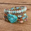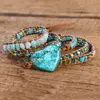 [Bohemian Turquoise Heart Beaded] Handmade Bohemian Blue Turquoise Heart Kingman Agate Beaded Bracelet - Natural Stones, No Plating or Metalwork - Suitable for Everyday and Party Wear