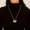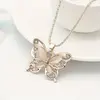 1Pc Vintage Boho Style Rose Golden Alloy Butterfly Pendant Necklace with Rhinestone Accents for Women - All Season Elegant Jewelry for Daily and Party Wear