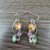 Boho Style Drop Earrings Silver Plated Inlaid Gemstone
