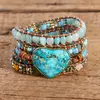 Vintage Bohemian Blue Turquoise Heart Agate Beaded Bracelet