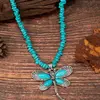 Boho Western Style Turquoise Stone Dragonfly Pendant Necklace