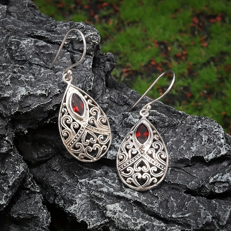 Retro Water Drop Earrings Red Cubic Zirconia