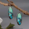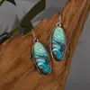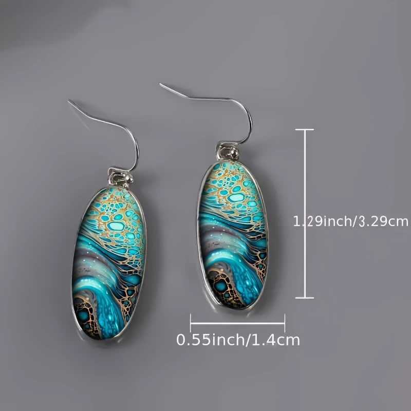Creative Colorful Oval Marble Pattern Synthetic Gemstone Decor Bohemian Pendant Earrings Zinc Alloy Silvery Jewelry