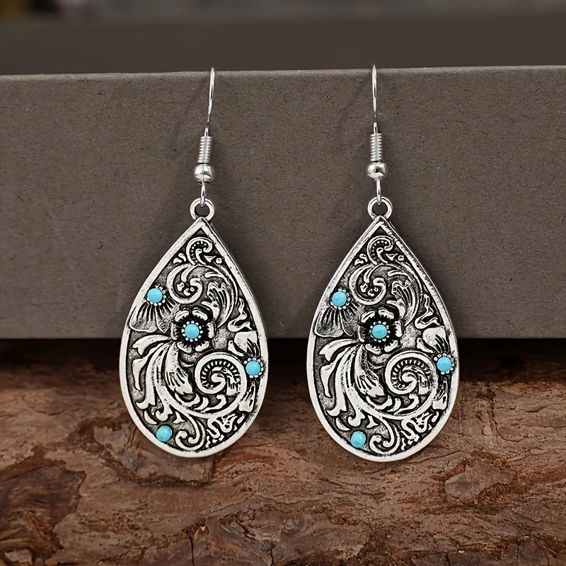 Bohemian Ethnic Style Unique Accessories Hollow Water Drop-shaped Golden Oil Drop Long Earrings