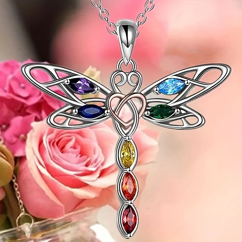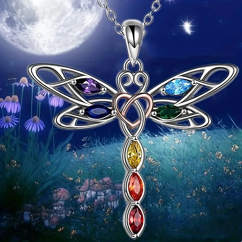 Seven Chakra Dragonfly Personality Pendant Necklace for Couple, Wife, Lover, Mother's Day, Birthday, Wedding Anniversary, Christmas Party Gift, New Fashion