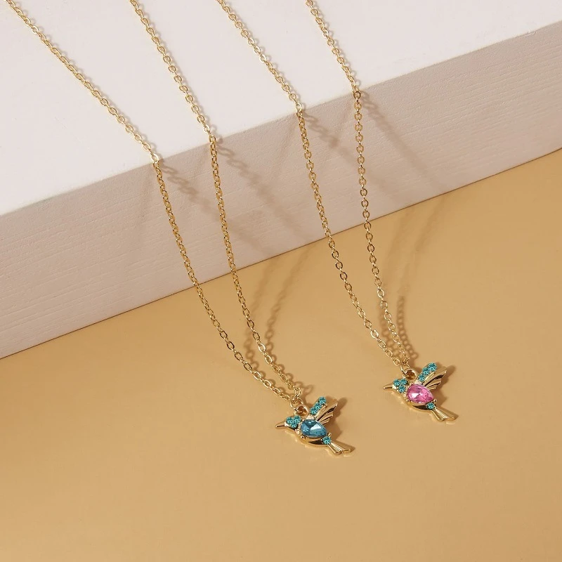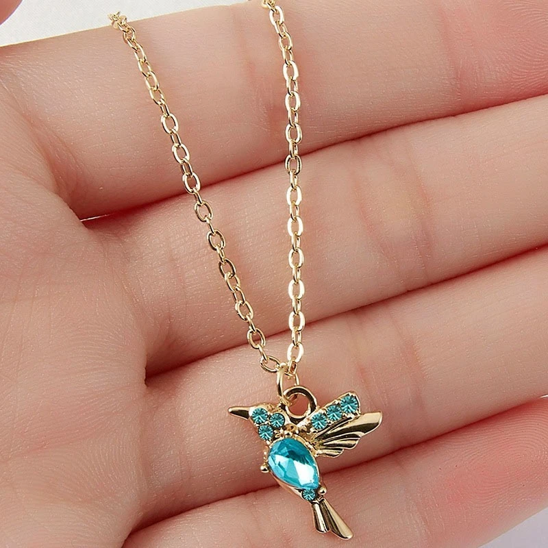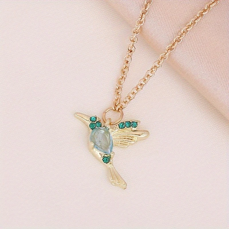 Elegant Golden-Tone Hummingbird Pendant Necklace with Blue Gemstones - Fashionable Alloy Collarbone Chain, Ideal for Birthday, Graduation, & Christmas Gifts, Hummingbird Decor