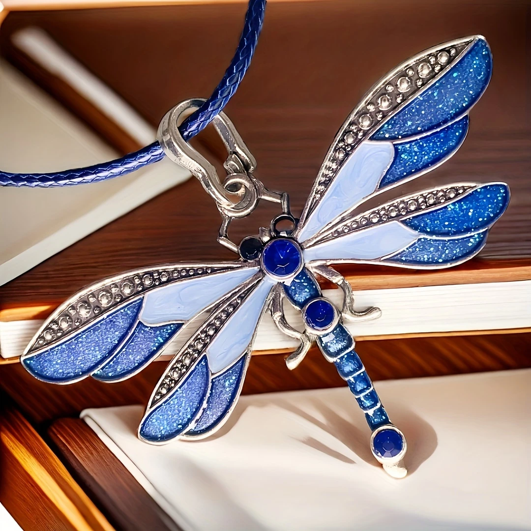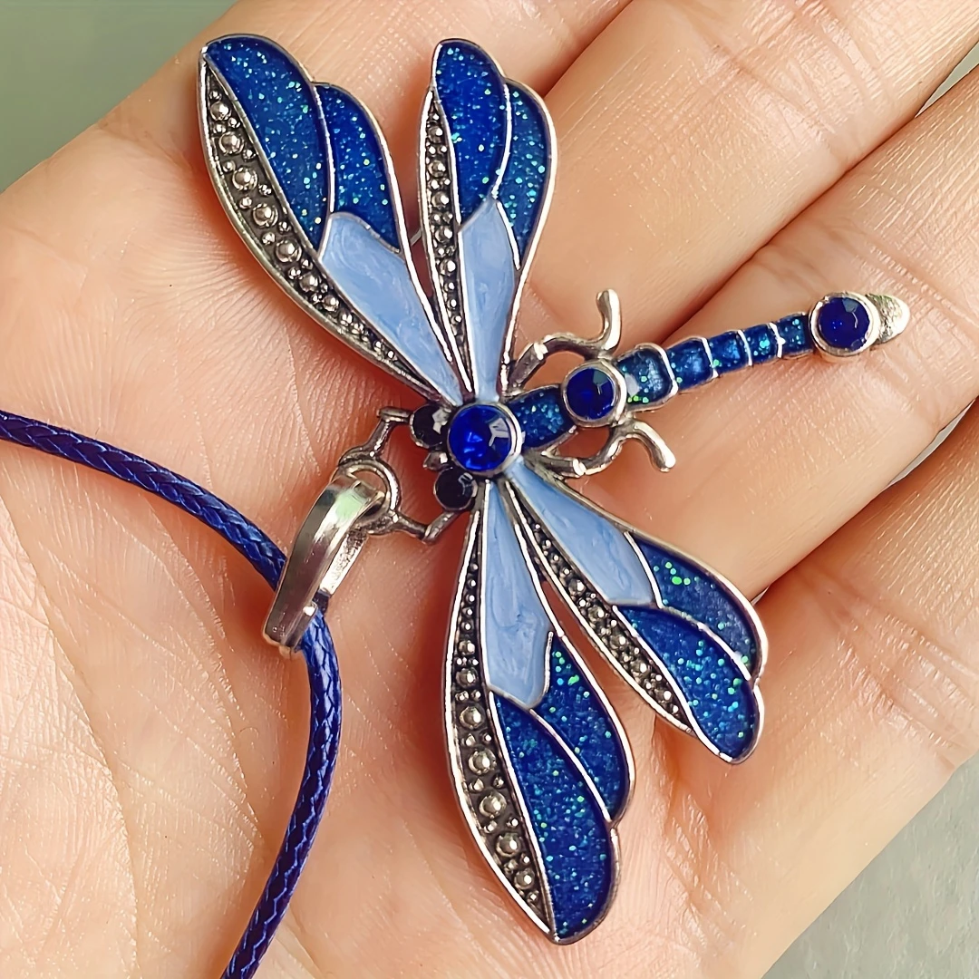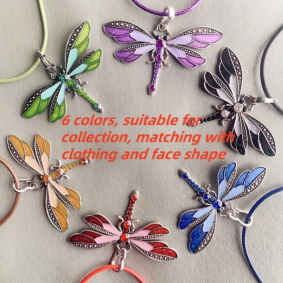 1pc/6pcs Colorful Vintage Dragonfly Pendant Necklace, Insect Shaped Jewelry for Men and Women, Nordic Viking Style, Synthetic Stone, Zinc Alloy, Rhinestone Accents, Unisex Fashion Accessory for Daily Wear, Perfect for Christmas, Thanksgiving, Birthday Gifts