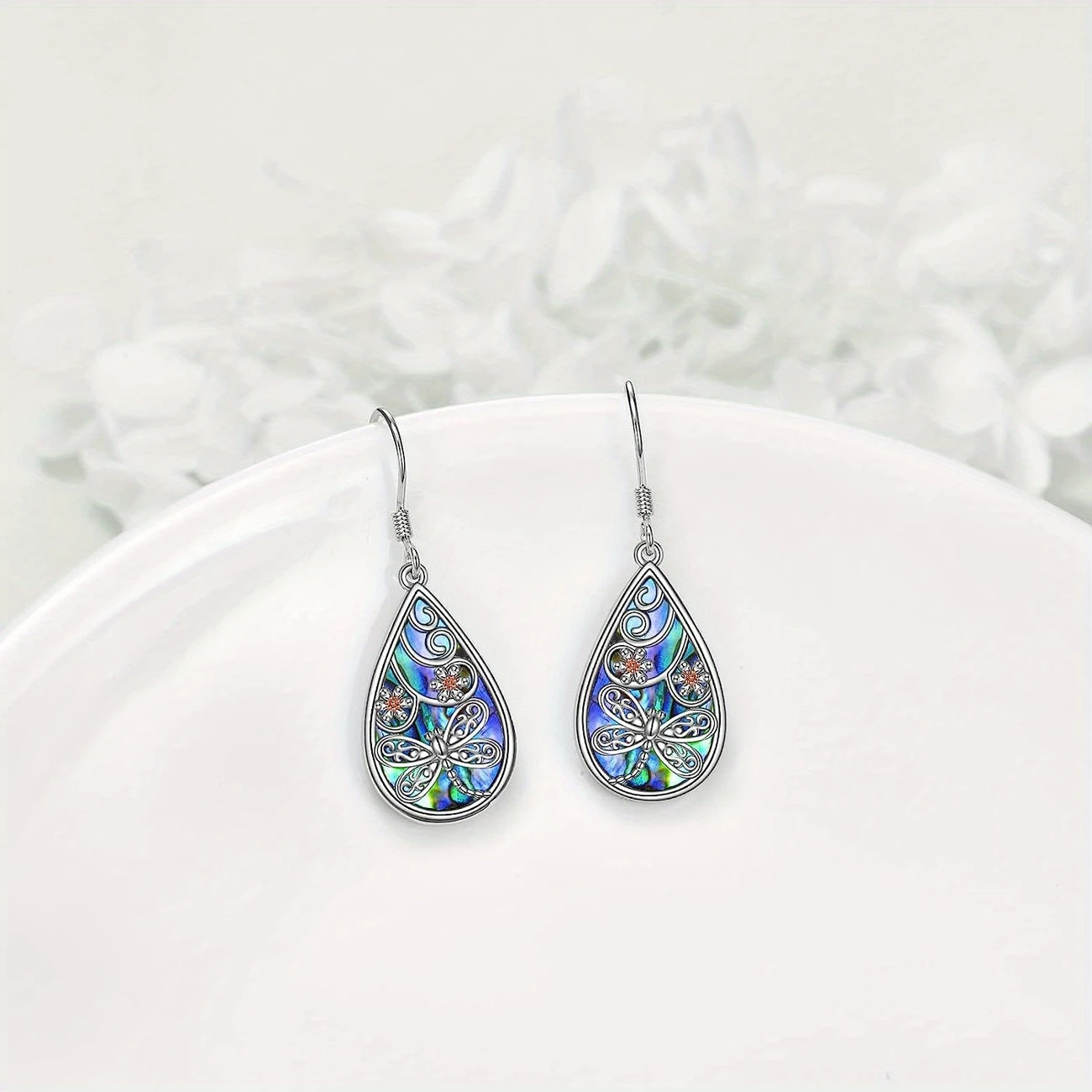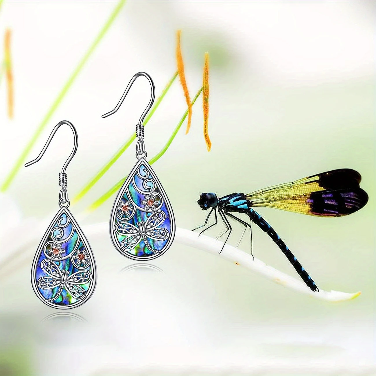 Elegant Dragonfly & Floral Drop Earrings - Alloy with White Golden Plating, Multicolor Fashion Jewelry for Girls, Perfect Gift for Birthdays and Christmas