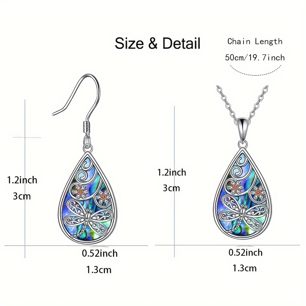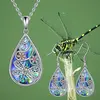 2pcs Set, Fashionable Dragonfly & Floral Teardrop Pendant Necklace And Earrings, Alloy, Assorted Colors, No Gemstone, Perfect for Family, Friends, Birthday, Christmas Gift, Dress-Up Jewelry Accessories