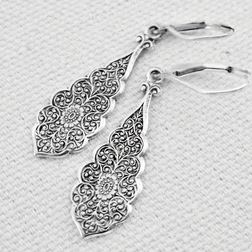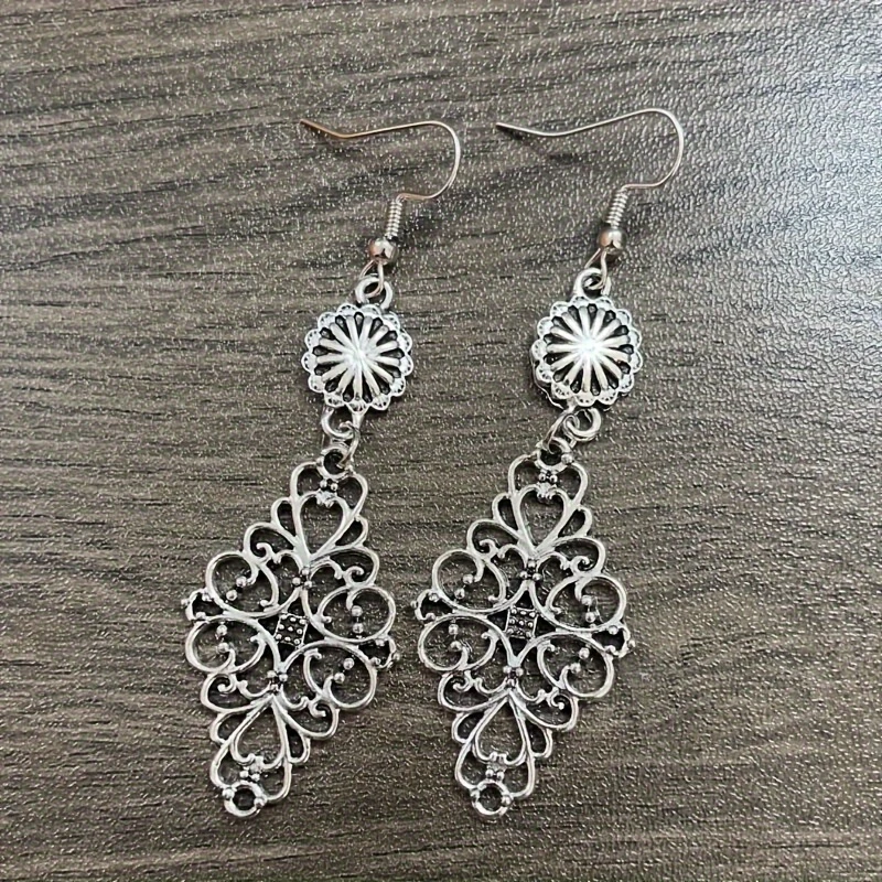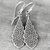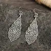 Silvery Vintage Carved Pattern Dangle Earrings Retro Ethnic Style Alloy Jewelry Delicate Gift For Women Daily Casual