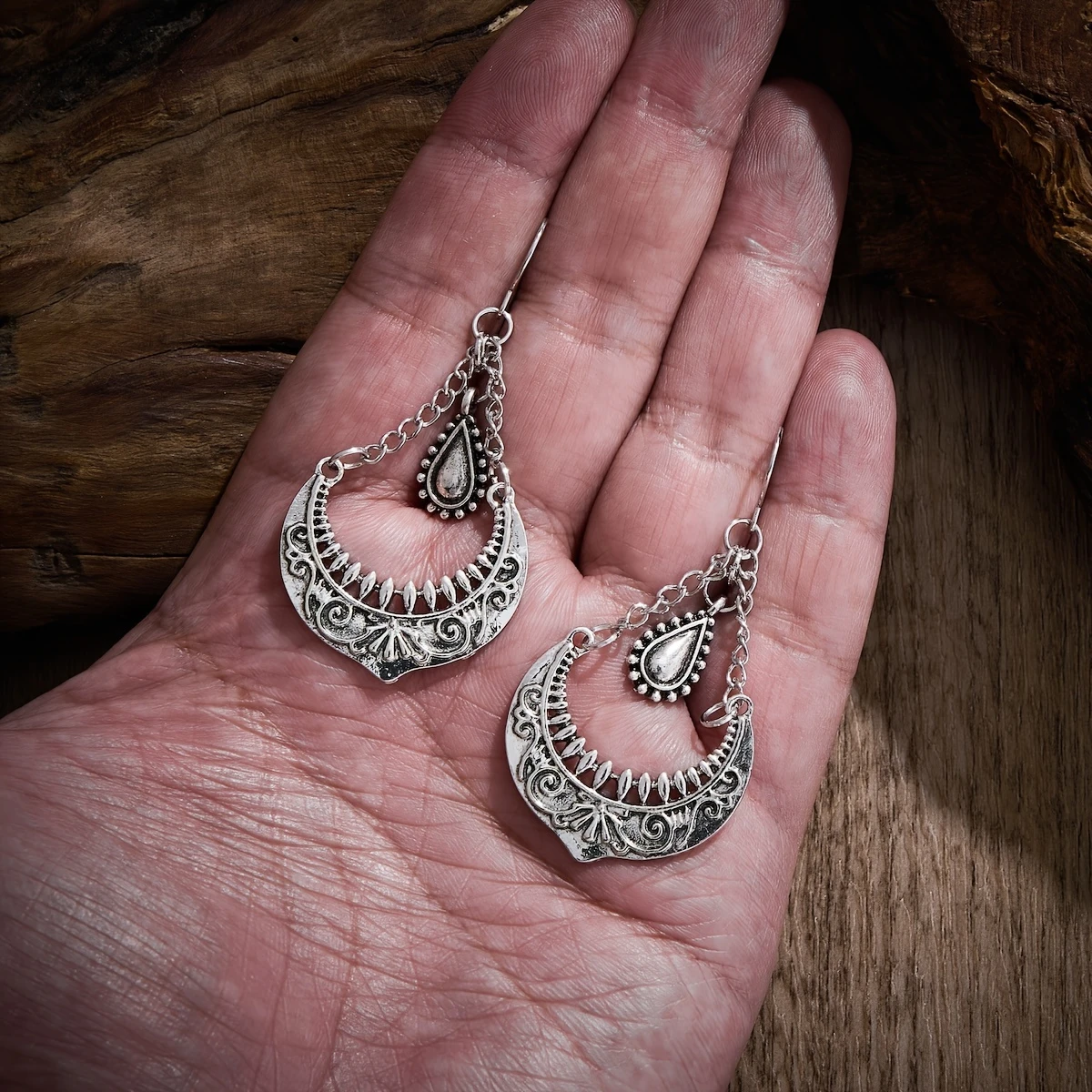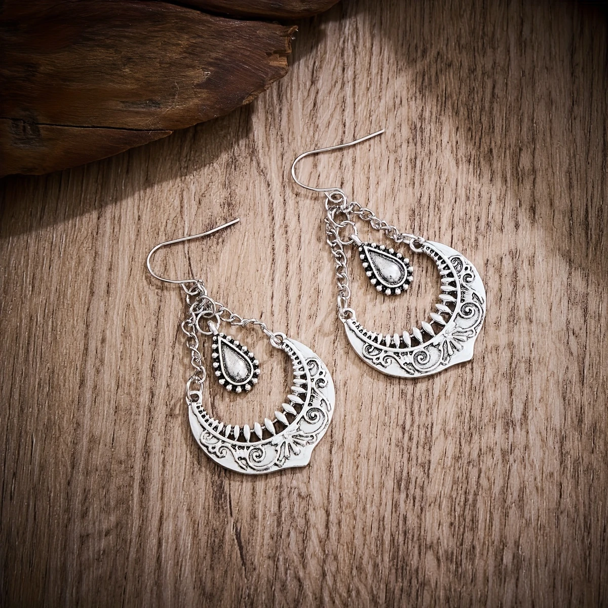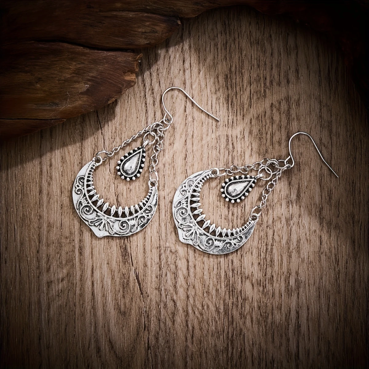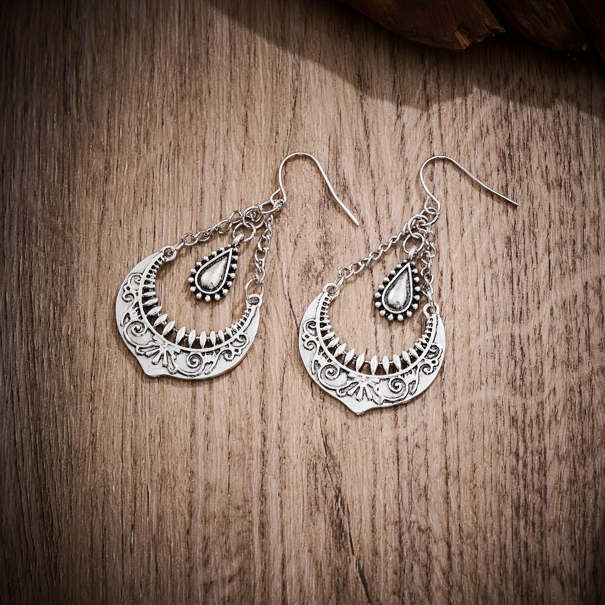 Vintage Botanical Carving Pattern Water Drop Geometric Pendant Earrings Creative Design Sense Earrings Daily Party Holiday Commemorative Jewelry